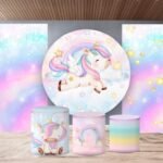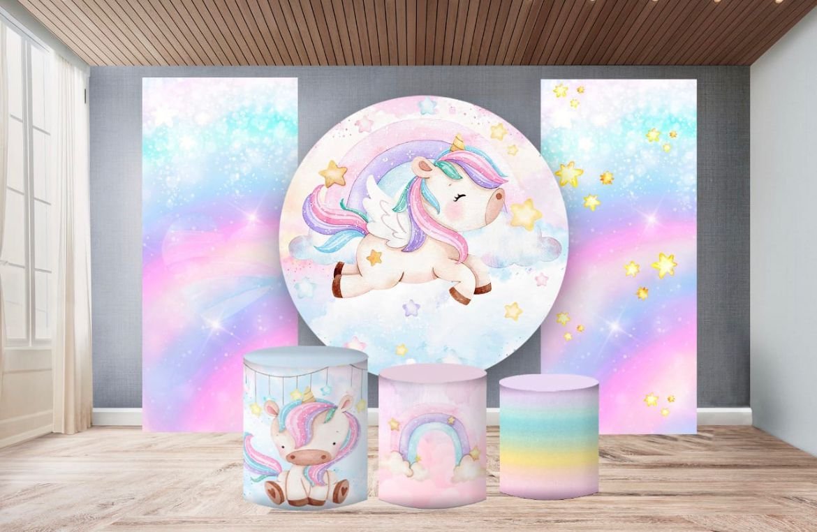 Kit panel circular,dos paneles laterales,trio de fundas – Unicornio
